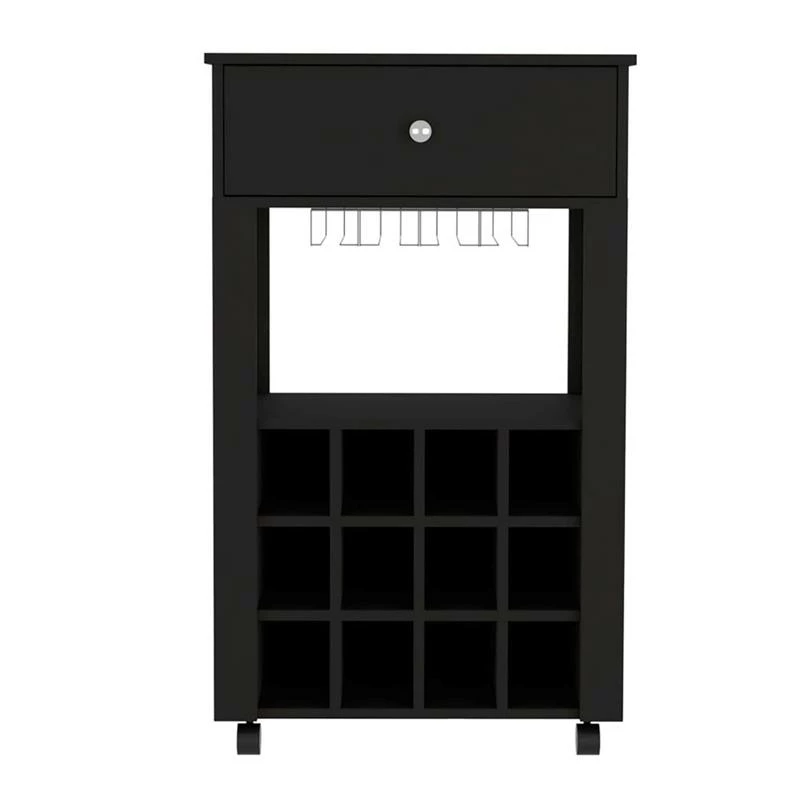 If you are a true wine lover and also looking for a modern option to store your bottles and glasses, the TUHOME Memphis Bar Cart is an excellent idea. With a large storage capacity, it has twelve cubbies (4”W X 4,7”H) to keep your wine organized and fresh, in addition to having the ability to store your glasses, with a large drawer and caster wheels (2,2”) to improve its mobility and adapt it as you want. Product dimensions (39,37”H X 23,62”W X 13,98”D) exclusive design with black particleboard.